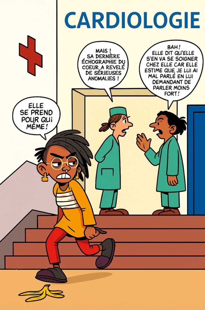 Et comme une star de télénovela prophétique, elle claque la porte du service cardiologie en criant : “JE VAIS ME SOIGNER CHEZ MOI !”
