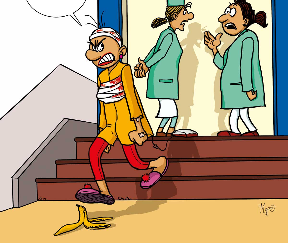 Silence dans le couloir. L’horloge sonne 9h. Une patiente entre d’un pas clopinant, couverte de bandages, compresses et reproches. C’est elle. Sœur Douleur. (Non, ce n’est pas son vrai nom, mais on la surnomme ainsi depuis qu’elle parle plus de ses blessures que de sa foi.)